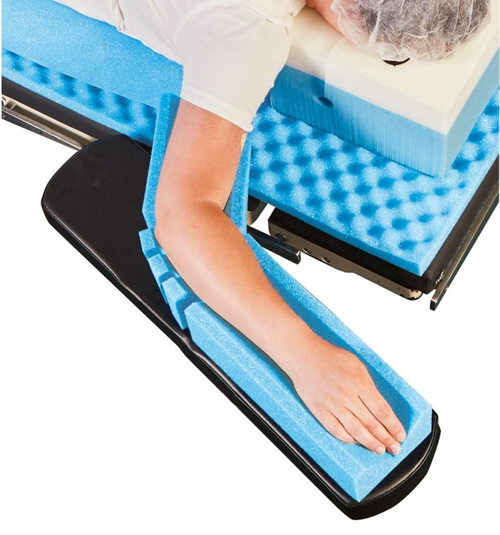 - این دستگاه با طراحی منحصر به فرد و جنس فوم نرم، در طول عمل جراحی در موقعیتهای مختلف از جمله حالتهای پرون، سوپاین و لاترال به راحتی از بازوها و دستهای بیمار پشتیبانی میکند.